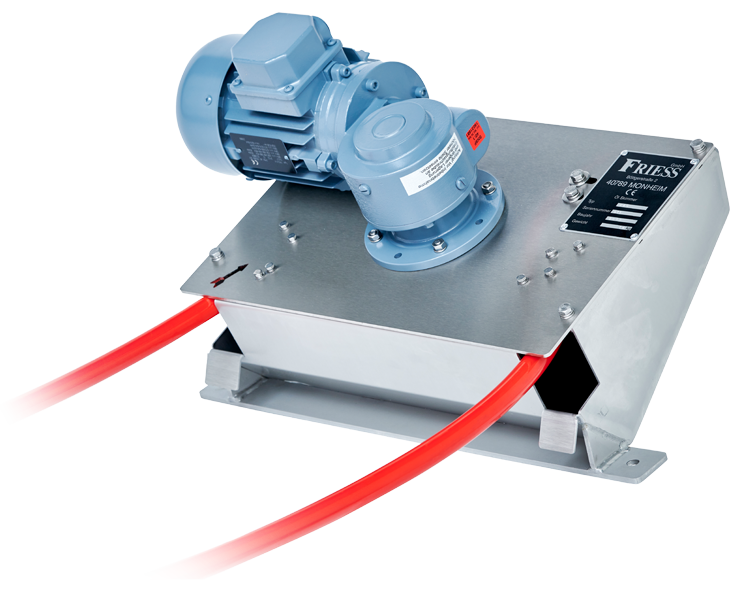 Pour éliminer le plus d’huile possible de la surface du bassin, il est nécessaire de la récupérer sur une large zone. Cela a été assuré à l’aide d’un récupérateur d’huile FRIESS modèle W40 équipé d’un tuyau collecteur d’huile de 14 m de long. Grâce à cette longueur, toute la surface du bassin a pu être couverte. Le tuyau collecteur d’huile est guidé du côté opposé au récupérateur, ce qui lui permet d’agir sur toute la surface du bassin. Le mélange est raclé par les racleurs en céramique du récupérateur d’huile et tombe ensuite dans un bac de récupération en forme d’entonnoir.